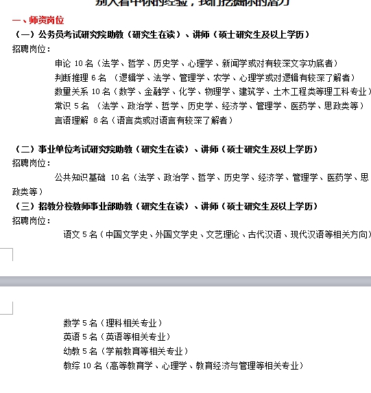 (一)公务员考试研究院助教(研究生在读)、讲师(硕士研究生及以上学历)