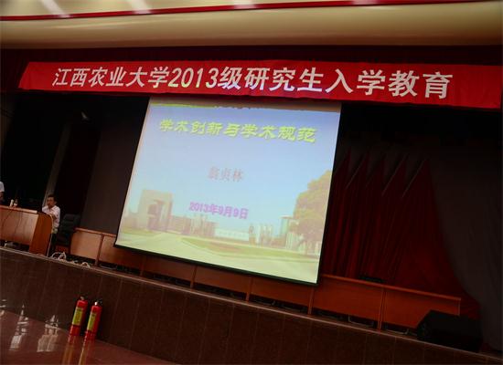 金秋九月,我校顺利迎来了492名硕士和26名博士研究生新同学,为美丽的江西农业大学注入了一份新鲜活力。为帮助研究生新同学尽快实现自我角色的转变,更快更好地适应学校新环境,从9月9日-14日,研究生处邀请有关专家、老师为新生举办了校情校史教育、学位与研究生教育情况介绍、学风建设与学术道德、励志教育、安全教育、外事教育、心理健康教育等主题报告和讲座,期间还开展了研究生新生与导师见面会、英语摸底考试、参观校史馆和学习《研究生手册》活动。